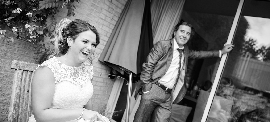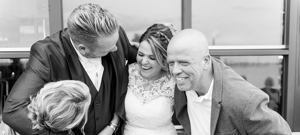 Bij deze bruiloft schieten me meteen een paar woorden te binnen: FUN, lachen, plezier tot de max én een heel dik feestje. Als ceremoniemeester mocht ik ervoor zorgen dat alles vlekkeloos verliep, zodat het bruidspaar en hun gasten alleen maar hoefden te genieten.